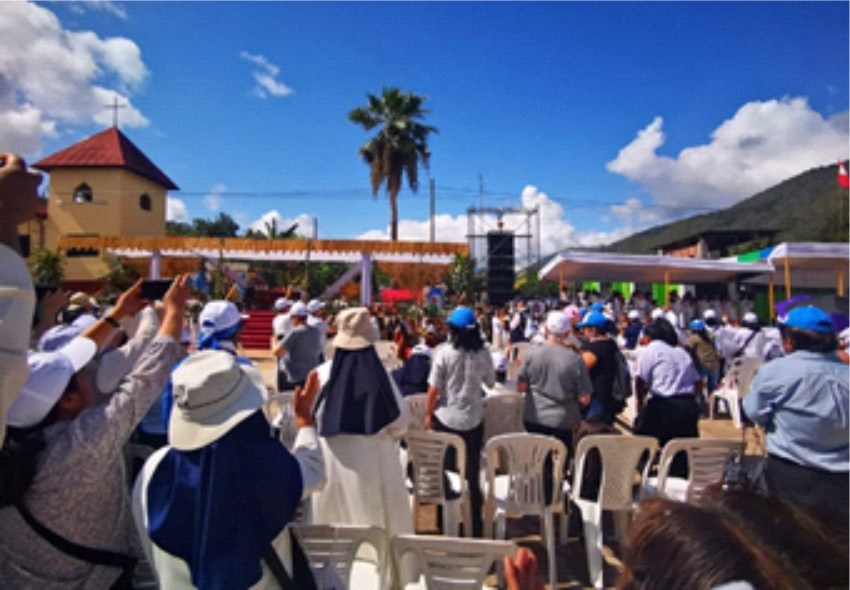 Los participantes se reúnen antes de la ceremonia de beatificación de Sor María Agustina Rivas López, conocida como Aguchita, el 7 de mayo en La Florida, Perú. (Cortesía de Yvette Arnold)